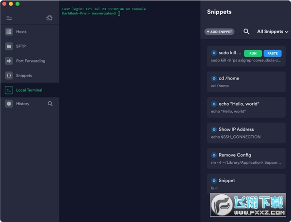 5、支持在不同终端使用 Snippets,将常用命令保存,实现长命令一键输入,提高写作效率。
