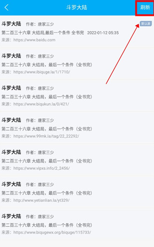 6、在显示的书源中选择一个切换即可,点击右上角的【刷新】还可以查看有没有其他新书源。