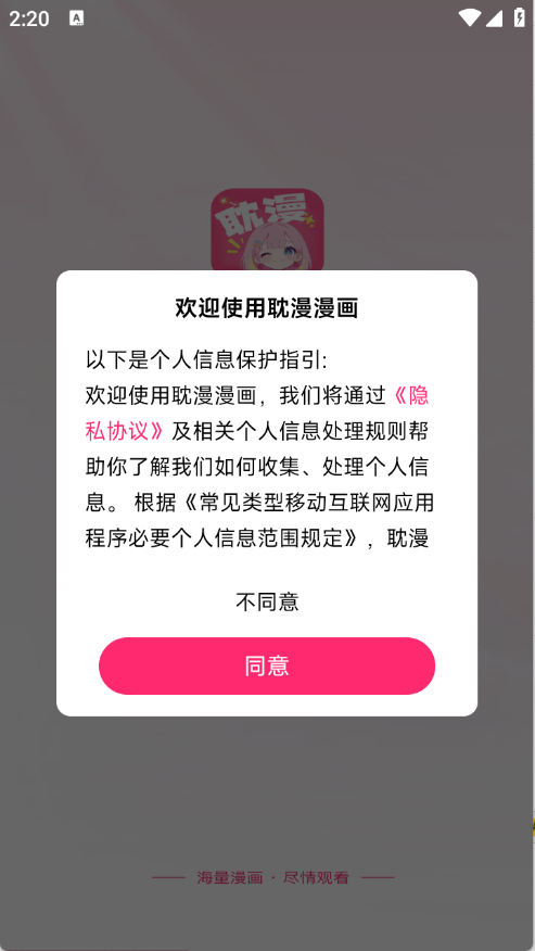 1、用户在本站下载耽漫漫画app,点击同意。